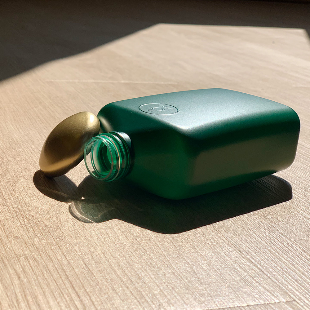 Зеленая квадратная бутылка геля ливня шампуня с уникальной конструированной завинчивой пробкой, хорошим качеством, хорошей закрепленностью и охраной окружающей среды.