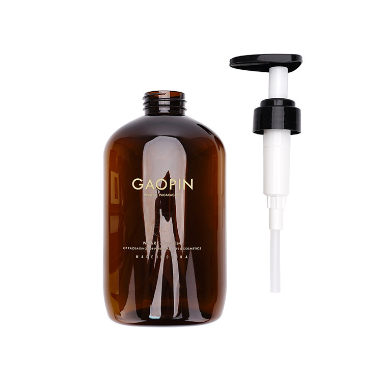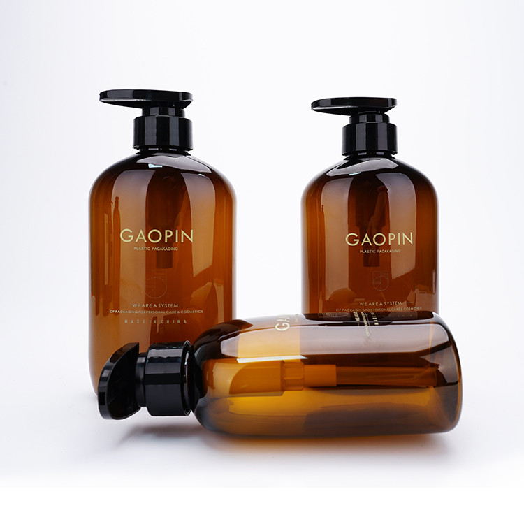 Бутылка мытья тела шампуня пустая, коричневый материал тела ЛЮБИМЦА с черным насосом лосьона, 3 наличными производственными мощностями, 340ml, 520ml, 650ml.