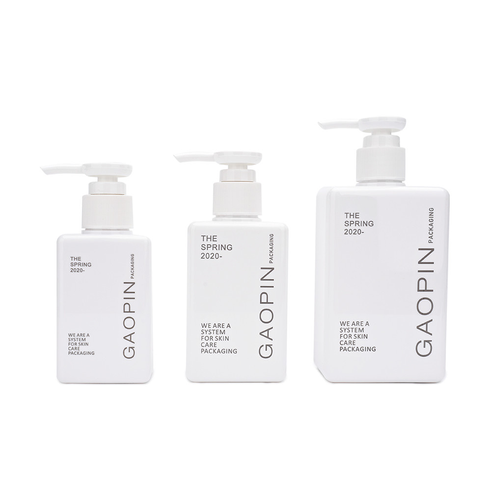 Белая квадратная пустая бутылка, соответствующая для шампуня, геля ливня, лицевого cleanser, легкого молока тела и так далее упаковывая, многофункциональное для того чтобы снести и прочный.